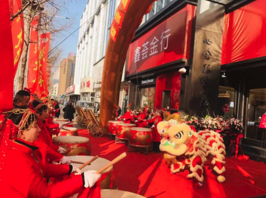 水母网1月19日讯 今天上午10点28分,伴随着鞭炮齐鸣和漫天飞舞的彩带,芝罘区南大街鑫荟金行传承店盛大开业!