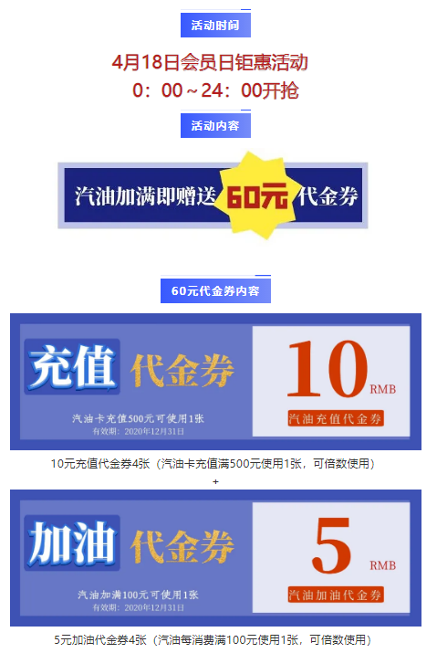 【交运石油】4.18会员日汽油加满赠60元代金券
