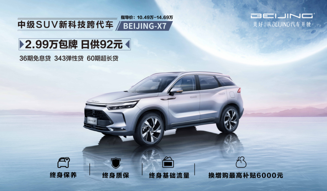 BEIJING-X7,2.99万包牌,36期免息贷 343弹性贷 60期超长贷,终身免费保养,终生免费质保,终身基础流量,换增购最高补贴6000元