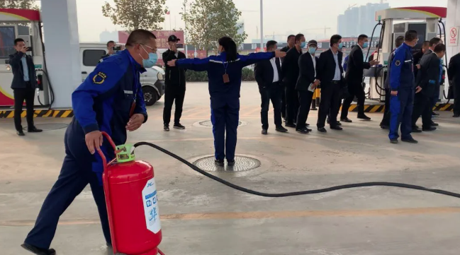 演练开始前,交运石油机场路站站长为各成员企业观摩人员讲解了加油站概况、加油操作制度化流程,并对现场参加演练的员工进行了演练前的安全教育、强调安全工作的重要性。