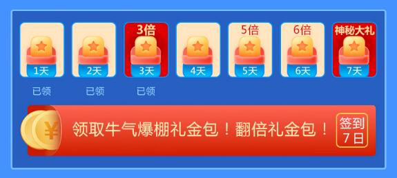 牛礼由礼金兑换,连续签到天数越多,获得的礼金倍数越大,所得礼金数量越多。