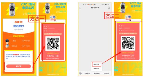 ①直接点击页面中的查看门票获取;②点击“烟台国际车展”公众号中“我的门票”获取。