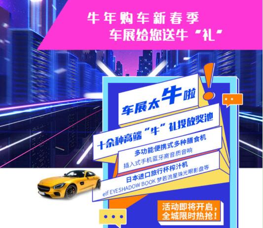 水母网3月12日讯(通讯员 夏玉)2021年烟台春季车展牛年献瑞,组委会推出一系列回馈用户体验活动。新一轮牛气冲天的福利狂欢盛会即将开启!趣味游戏、超值好礼全新升级,活动礼金天天赚,签到、助力蓄牛气,“车展门票半价购”!强势“牛礼”限量领!十余种进口“牛礼”早已准备就绪,“半价门票”“0元牛礼”两大活动攻略,