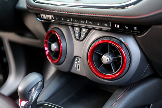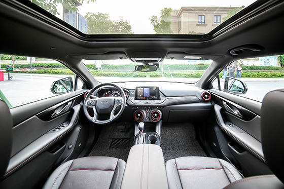 估计年轻的小伙伴们看到外观之后,就已经充满心动了,但笔者想说,这还远远不够。开拓者,不仅是颜值呈现满满的冲击力,进入驾驶舱,会让你更加沉迷于独特的雪佛兰驾驶氛围,这都得益于它将雪佛兰跑车的设计元素,融入其中;中控台之上的空调出风口设计灵感来源于科迈罗,并加入红色装饰进行点缀。内饰方面,开拓者在设计层面非常时尚,个性鲜明,有强烈的运动氛围,让人看起来不会很油腻,要知道当下小姐姐们最反感的就是油腻。开拓者高度还原了获得沃德十佳内饰的科迈罗的设计,大量皮革材质加入以及出风口、氛围灯等个性化设计让这台车从设计到触感都透露着高级,其新颖程度和用料之扎实,不仅在同级车甚至跨级车上都表现非凡,尤其是当你开门看到投射灯,感受旋钮细腻的阻尼以及车内氛围灯、杯托灯感性的设计时会对这位美国选手刮目相看,细节上满满的高级感。用一个字形容,就是——刺激。