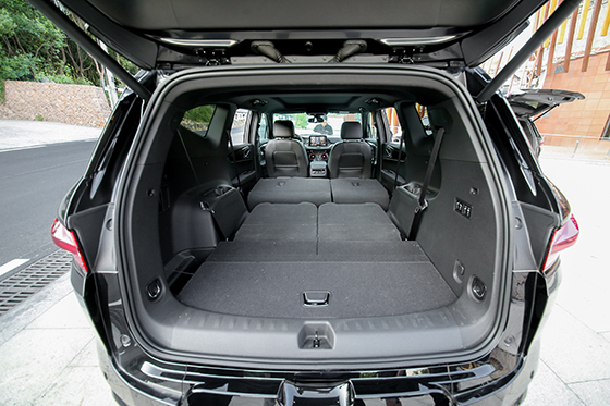 空间方面,关于座椅舒适度和前后两排空间的讲述已经很多了,这里想着重讲一下第三排空间,开拓者的第三排不仅空间宽裕,而且扶手、采光、空调出风口、阅读灯这些配置应有尽有,上下车非常方便,可以长途乘坐,开拓者确实是这个级别、这个价位少见的“真7座”车型了。后备箱空间大的超乎想象,右侧有座椅调节开关,可以调节第二排座椅、第三排座椅靠背,不过这个开关仅支持第二排座椅靠背放倒,第三排座椅可以放倒升起。除此之外,后排座椅全部放倒后非常平整,可以放置大件物品,例如各种大型户外用品,并且第二排座椅6:4比例,空间灵活多变。