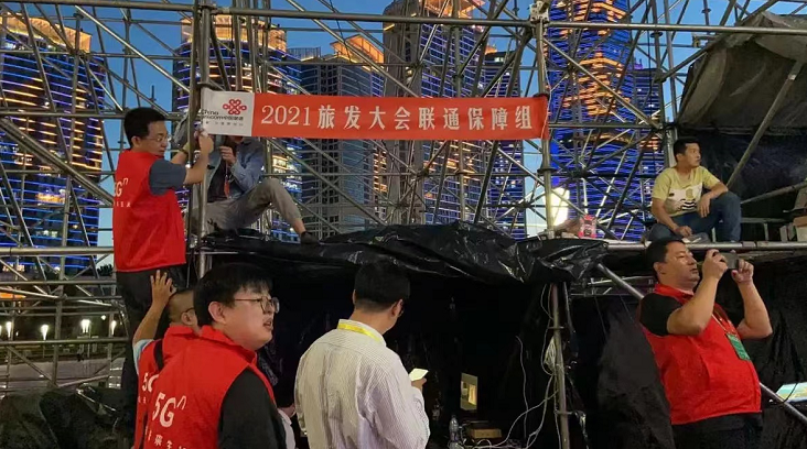 为确保大会通信保障万无一失,烟台联通成立保障工作领导小组,各级领导靠前指挥,精心部署,提前调派1辆应急通信车进入会场进行测试开通,并对大会主会场多次进行实地勘察,对会场周边参数作调整和优化,同时根据现场测试情况制定周密的通信服务保障方案。根据保障方案,大会主会场采用“多路由接入、末端聚合保护”的联通大宽带互联网链路的方式,确保整个大会包括国内与海外连线、工作会议视频传输、四国语言同声传译、电视台千兆接入直播的顺利进行。另外,在超过百名国际友人同时在线的“海外连线”环节,烟台联通提前对网络质量进行反复优化演练,确定了“两条千兆有线宽带为主备,5G接入为辅助”的多重保障。同时,为随时应对突发情况,保障人员反复校对传输设备,制定了在极端情况下的多种应急保障预案。