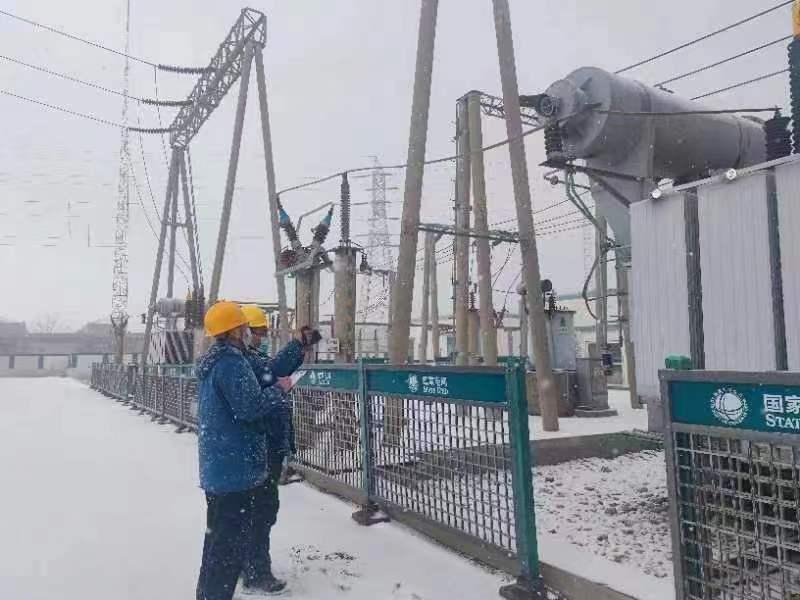 面对恶劣天气,国网烟台供电公司及时启动应急预案,加强负荷预测管理,密切关注负荷变化情况,针对电网运行薄弱环节,及时编制事故预案和应急措施。加强电网设备巡视,输电运维人员连续监测重点线路导线、绝缘子的覆雪、覆冰情况、防舞动装置运行情况,检查杆塔上的螺栓、销钉、金具,及时监测耐张线夹和导线接头处的温度变化,确保供电线路安全运行。变电运维人员利用智能辅助系统和人工巡视相结合的方式全面开展特巡,充分利用远程智能巡视、在线监测等手段,结合电网运行方式,详细制定巡视计划,细化分解任务,落实一站一人预案,对主变压器、开关及GIS气室等充油充气设备进行防寒防冻专项特巡,提前发现油位低、压力低隐患并及时上报消缺。排查加热器、空调、电暖气等设备运行情况防止气温骤降发生设备凝露绝缘降低威胁设备安全运行。利用红外测温仪对刀闸触头、出线套管线夹等展开测温,全面掌握雪天变电站设备运行情况,确保能够第一时间发现异常,并做到准确、快速处置。
