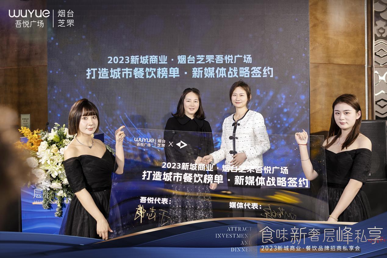 吾悦广场作为中国商业地产行业领跑者,专业的招商定位、强大的商业运营实力及资源统筹优势,吸引诸多品牌共谋发展。活动尾声,于志靖总与烟台美食头部新媒体——方片文化传媒代表达成年度战略合作,餐饮x新媒体强强联合,做透餐饮低成本O2O运营、强化美食KOL市场发声、冲刺城市年度必吃榜,共同打造吾悦广场餐饮品牌化矩阵。