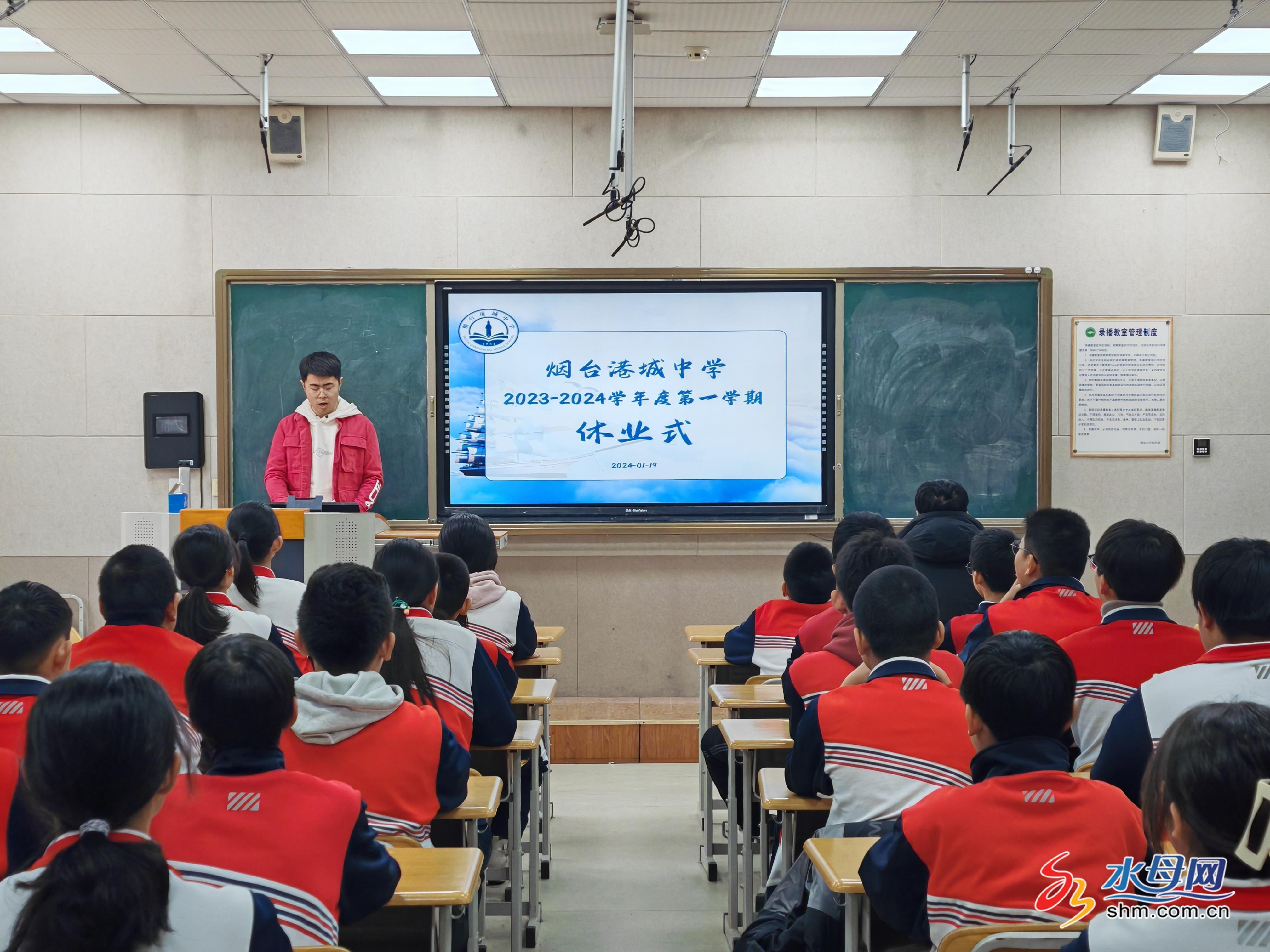 水母网1月23日讯(通讯员 杜俊宏 盛杰)岁月流转,时光飞逝,充实而又愉快的一个学期已经悄然结束。 1月19日上午,烟台港城中学举行了2023-2024学年度第一学期休业仪式,为本学期的学习生活画上了圆满的句号。