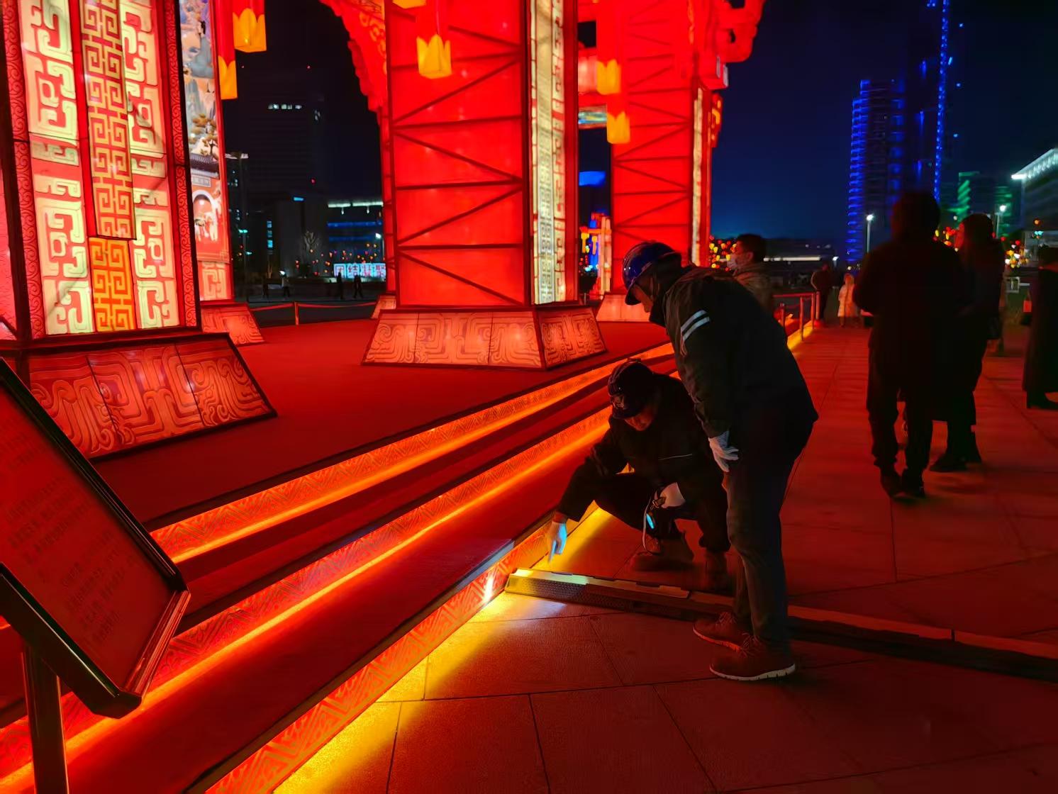 针对近期降雪等恶劣天气,烟台供电公司提前做好事故预想和反事故措施,提高事故处理应变能力。对灯展现场、市政亮化工程等用电设施进行检查,重点检查设备接地、线路绝缘、开关保护等安全环节,并对灯展现场的临时用电设备进行专项检查,发现问题第一时间协助处理,确保灯会安全用电。同时,巡查人员还对灯展所涉及供电线路及设备开展特巡特护,及时掌控台区负荷情况及线路设备运行状况,消除缺陷隐患,确保设备处于最佳供电状态。