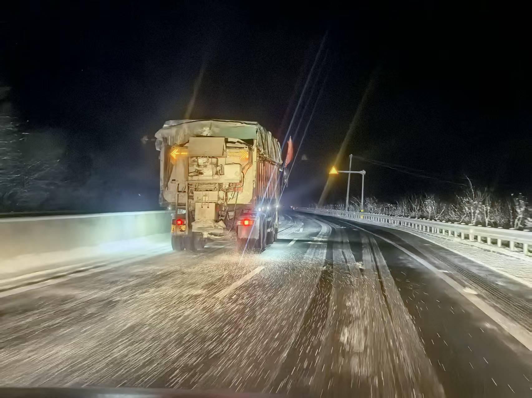 此次寒潮应对中,全市公路系统累计投入巡查车428台次、人员2652人次,出动推雪铲、滚刷、平地机、撒布箱等各类机械设备963台次,在部分桥面及急弯、陡坡路段抛撒融雪剂2850余吨、防滑砂660余方。目前,全市普通国省道保持安全畅通。