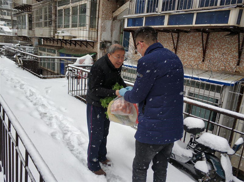 2020年新冠疫情防控期间,东山街道南沟社区志愿者为群众送去生活必需品