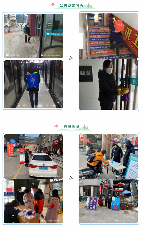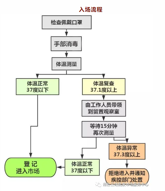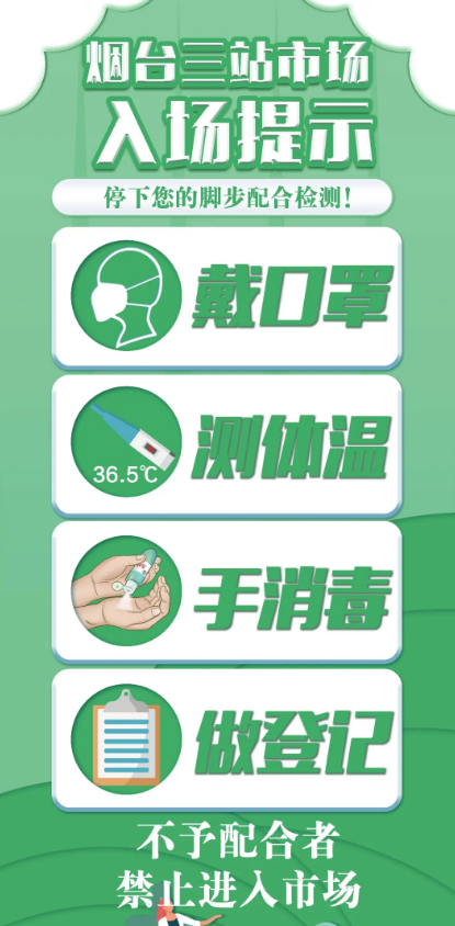 山东省启动重大突发公共卫生事件Ⅰ级响应后,领导小组召开紧急视频会议,对市场的疫情防控措施再加强。主要是对所有人员特别是从湖北返回及到湖北准备返回、与湖北来烟人员密切接触、外省籍职工和业户、与确诊病例及其密切接触者有接触的、身体有异常的等“五类重点人群”进行全面再排查,做到市(市场)不漏户,户不漏人,全面摸清底子,为防控和开市做好基础性工作。每天召开领导小组调度会,编发防控专报,通报每天工作情况。同时,强化舆论引导,营造齐心协力防疫情的浓厚氛围。各市场充分利用电子屏、有线广播、微信群、QQ群、公众号等多种形式,将中心《致三站市场商户的一封信》、《三站市场开市指南》等推送给每名商户,加强防疫知识宣传教育,加强新冠肺炎相关热点问题宣传,引导职工和业户强警惕、不轻视、不传谣,增强自我防控意识和能力。并按照《三站市场开市指南》要求,做好健康上岗卡的申办、个人通行码的生成,签订岗位防疫承诺书等各项复工准备工作。
