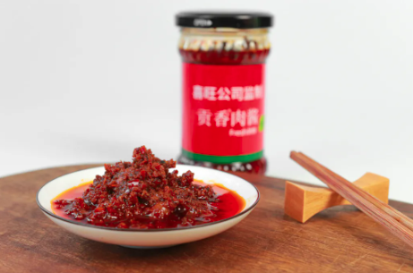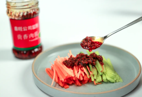 贡香肉酱口感丰富,既有山的味道,又有海的鲜美,秘制配方融合现代工艺,经过多重熬制而成,鲜香尽在唇齿间弥漫。另外,贡香肉酱的百搭吃法,也是吸引消费者竞相购买的重要元素。例如,贡香肉酱加热后,用出锅馒头蘸食之,可谓唇齿留香,百吃不厌。贡香肉酱还可做成肉夹馍,或者将热馒头从中间切开,抹上贡香肉酱,加上几片生菜,就成了一份“中式汉堡”;吃米饭时,挖上一勺肉酱,满口的肉香和香菇海带的鲜香;早上煮碗面条,来勺贡香肉酱,一份香喷喷的拌面就做好了,香气扑鼻欲罢不能。