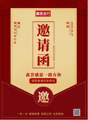 鑫荟金行感恩内购会,感恩一路随行 诚邀您的参与。