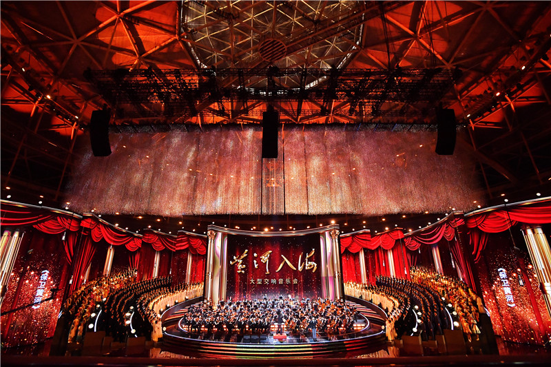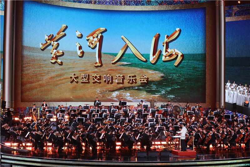 水母网9月16日讯(通讯员 王宇 摄影 白少光 樊圆圆)9月16日晚8:00,由文化和旅游部、山东省委、省政府共同主办的大型交响音乐会《黄河入海》在济南奥体中心东荷体育馆举行。《黄河入海》大型交响音乐会既是贯彻落实习近平总书记在黄河流域生态保护和高质量发展座谈会上重要讲话精神的重要举措,也是用文艺的形式讲好新时代黄河故事、新时代山东故事,促进黄河流域文化交流的一次全新尝试。