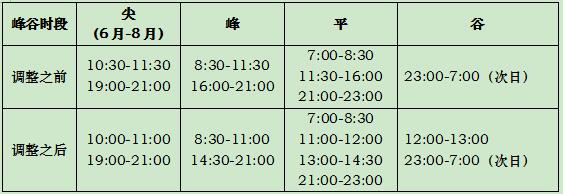 文件规定,对现行工商业及其他用电(包括大工业和一般工商业)的峰谷分时电价时段进行优化和调整,调整前后的峰谷时段分布见下表。相关工商业用户可以通过调整生产班次、优化用电安排,进一步降低用电成本。
