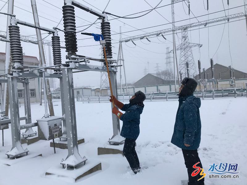 水母网12月30日讯(通讯员 马学利)12月30日,烟台市持续降雪天气,国网烟台供电公司组织变电运维人员对220千伏芝罘变电站等重点变电站进行雪中巡视,及时清理变电站设备积雪,做好设备测温工作,排查和消除供电安全隐患,确保变电站设备安全稳定运行,保障元旦期间安全可靠供电。