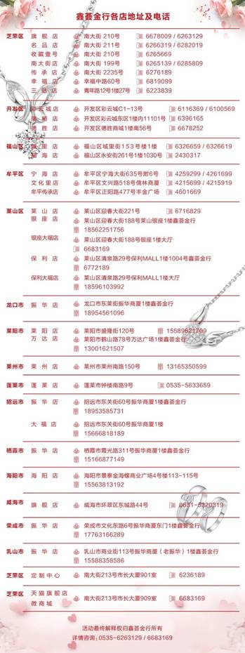 并且,将活动信息分享至朋友圈即可进店免费享受10项专业服务!包括专业咨询、首饰整形、珠宝鉴定、维修焊接、戒指缠线、首饰保养、首饰清洗、挂件换绳、首饰抛光、项链穿鱼线等服务!还可以获得鑫荟金行定制版丝巾一条!