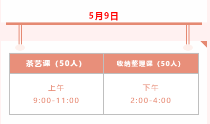 课程内容:4月份广受好评的整理收纳课,5月份将继续进行,从空间规划、衣柜整理、物品分类、收纳器具等多个方面,带大家了解永不复乱的家居神奇收纳法则。