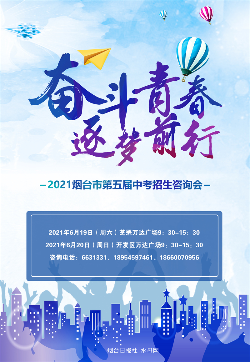 据悉,烟台市中考招生咨询会是由烟台日报社主办、水母网承办,距今为止已经成功举办了四届,是烟台教育系统最权威、最专业的升学咨询盛会。2021年烟台市第五届中考招生咨询会将于6月19日、20日分别在芝罘万达广场、开发区万达广场举行。与往年不同,今年的中招会还将有名师现场为考生及家长解答志愿填报、选课方向、职业规划等诸多困惑。本次活动面向全市考生及家长,活动全程不收取任何费用,考生和家长可一同前往。