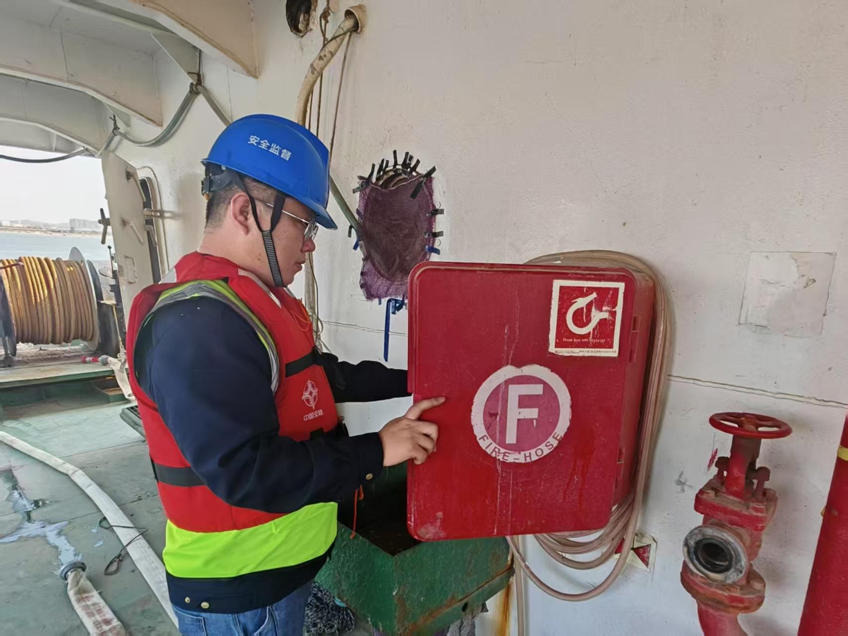 虽然有先进的设备,但蔺山平从不依赖“坐堂问案”。每天下午,他都会扎进现场检查,实时生成隐患报告。在5月的一次例行巡查中,他通过手持仪器热成像仪,发现船上液压管存在隐性渗漏,“调度室的热成像感应器显示正常,但船舱内部检查不到,用手持工具检测后拆开果然发现管壁已经老化。”蔺山平说到。