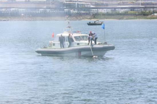 中交广航局烟台防波堤项目联合烟台海事局八角海事处开展船岸综合应急演练
