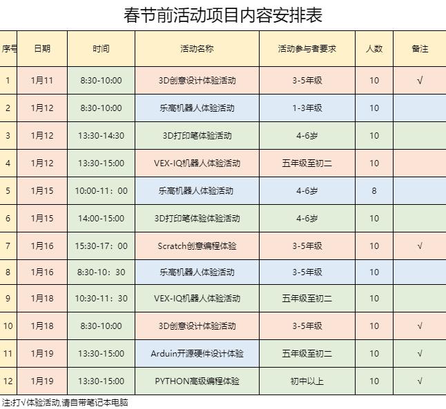 每位参加活动的学生只能在上述活动项目中选择1-2项进行体验,体验活动不收取任何费用,所有体验活动项目必须提前预约。但为保证参加人数和活动质量,报名成功的同时,请预缴参加活动保证金20元,届时到场参加活动时全额退还。