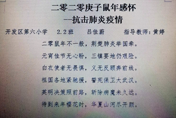 抗击肺炎疫情丨开发区第六小学2.2班 吕佳蔚