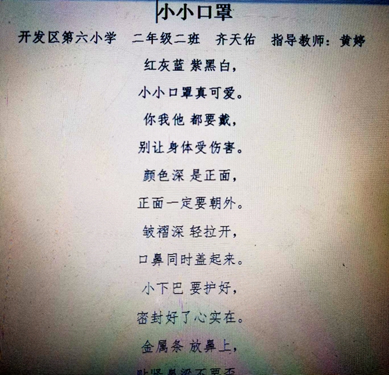 小小口罩丨开发区第六小学2.2班 齐天佑