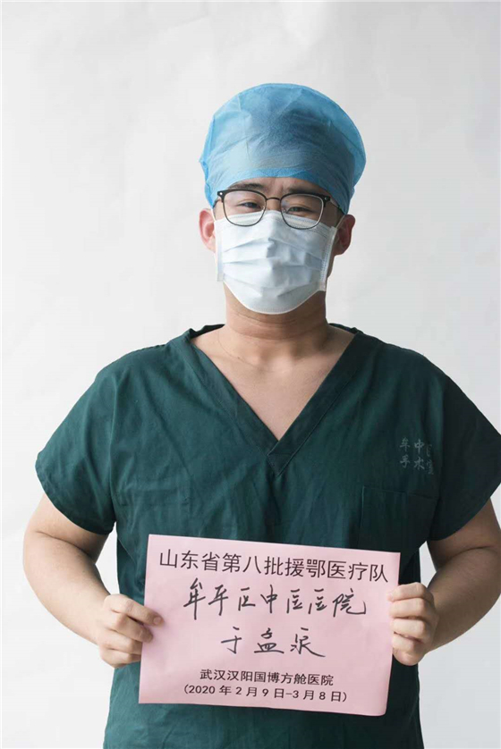 于孟泉毕业于山东中医药大学中医内科学肺病学方向。擅长肺癌及肺间质病的中西医结合治疗,他参与的《非小细胞肺癌病证结合模型》获得国家教育部颁发的国家科技进步一等奖。2月9日0时30分,烟台市牟平区中医医院接到牟平区卫健局通知,需选派医护人员,即刻起身驰援武汉抗击疫情。医院从报名的人员中,根据专业需要和驰援人员配置,选中呼吸科医师于孟泉加入烟台市第四批援卾医疗队。“我非常愿意去武汉,能上一线让我无比光荣,我感谢医院给我这次机会。”当接到电话时,原本睡眼朦胧的于孟泉立即振奋了精神,给出坚定的回答。