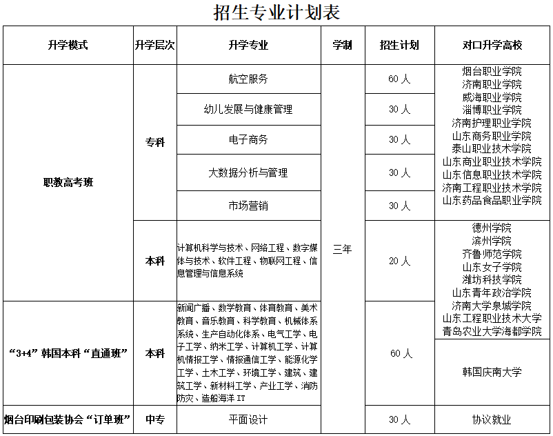 我校所有专业均采用“3+3”、“3+4”的培养模式。前三年在本校系统的学习专业所需的基础课程、专业理论及部分实训课程,第3学年学校对每位同学进行精准“一对一”升学规划,指导学生升入对口高等院校,毕业后取得全日制统招大学学历。