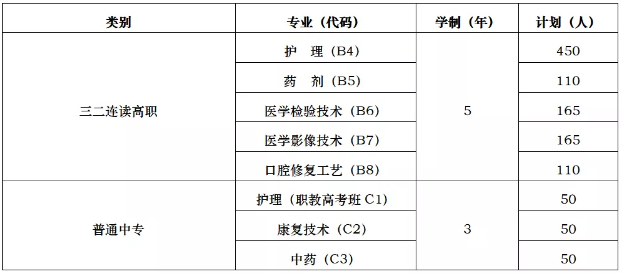 现开设护理、药剂(药学)、医学检验技术、医学影像技术、口腔修复工艺(口腔医学技术)、康复技术、中药等七个专业。举办“3+4”对口贯通分段培养高职、“三二连读”高职和三年制中专三个学历层次的全日制教育,同时联合开办本、专科成人学历教育及各类职业资格培训等非全日制教育,全日制在校学生近5100人。