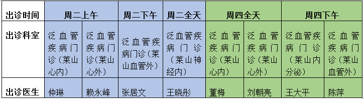 出诊地点:烟台毓璜顶医院莱山院区泛血管疾病管理中心(门诊一楼大厅东区)