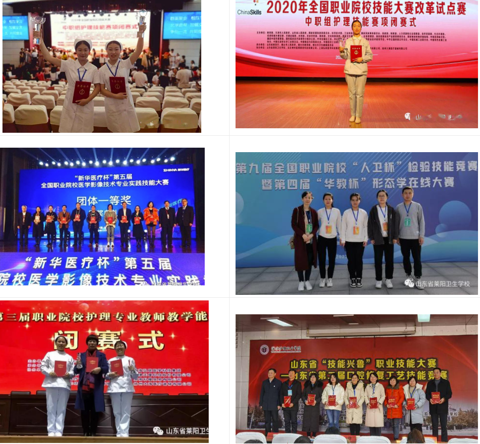 拥有省级教学团队2个、省级名师工作室1个、省青年技能名师3人、全国职业院校技能大赛评委2人、省特级教师1人。护理专业教师在全国教师技能大赛、省教学能力比赛、市优质课比赛中多次获得一等奖,参与山东省中等职业学校护理专业教学指导方案的制定。近年来,护理专业学生在全国职业院校技能大赛中表现优异,获全国护理技能大赛一等奖10枚,山东省护理技能大赛一等奖9枚。