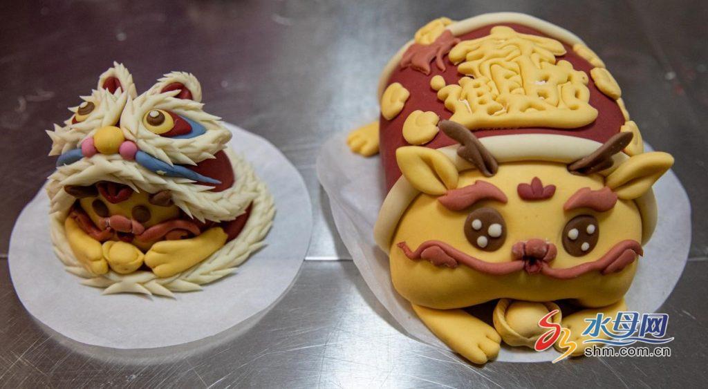 Mešanje, farbanje i oblikovanje testa, pod veštim rukama Ću Baole, majke rođene 1985. godine u Fušanu u gradu Jentaj, transformisano je u „Zmaja sreće” koji nosi zlatni ingot.