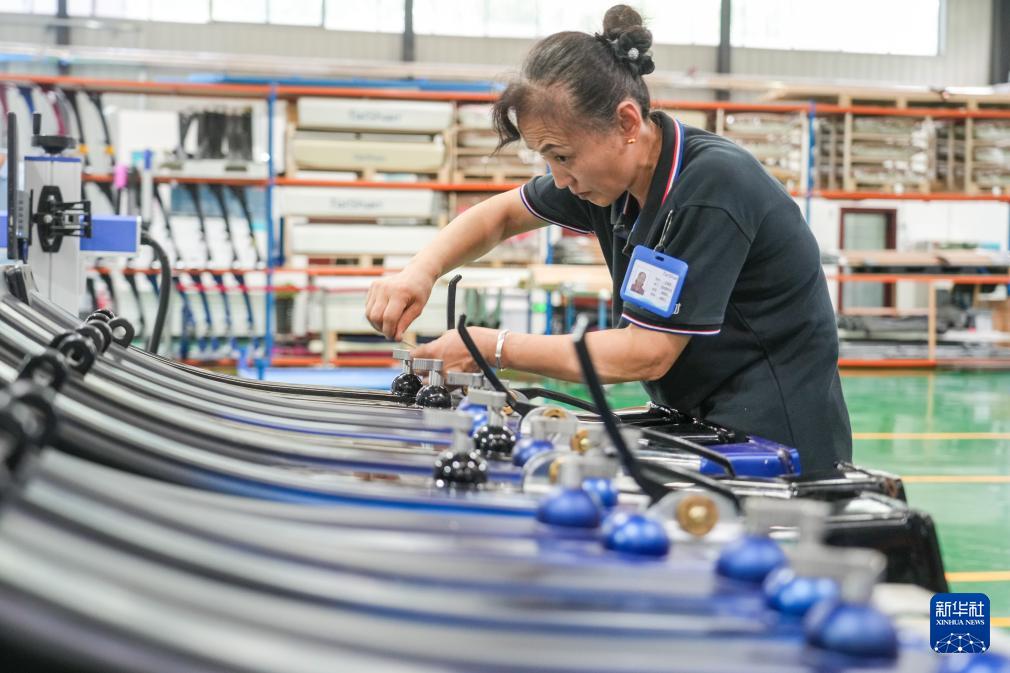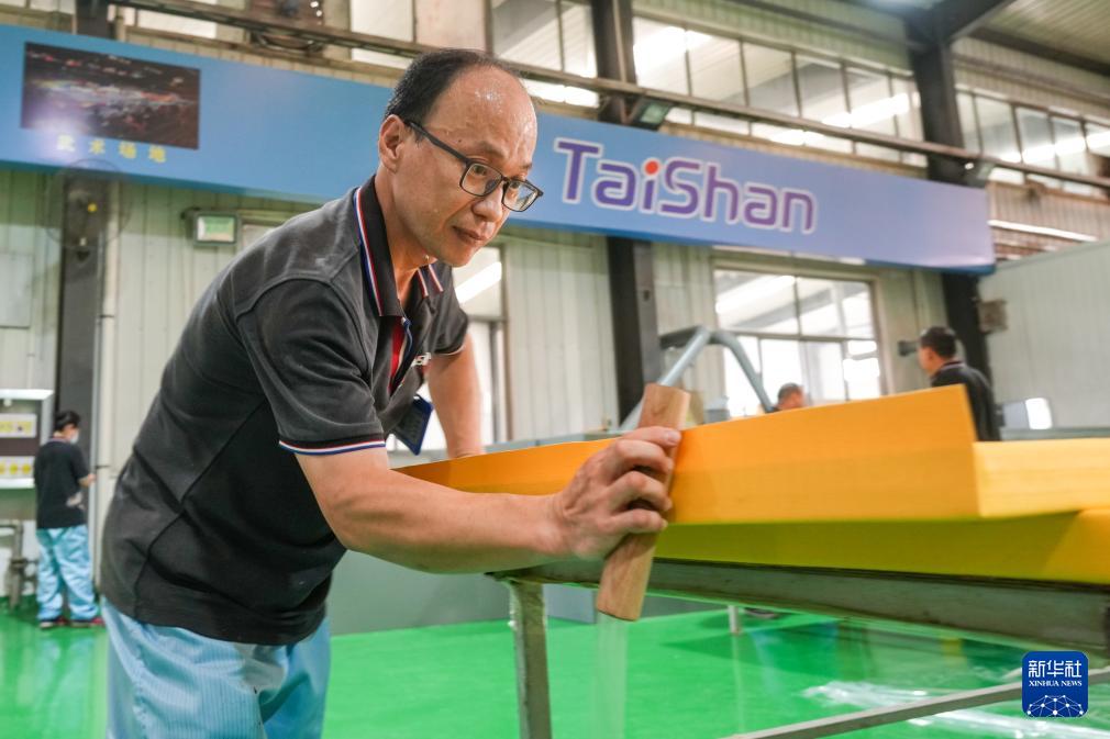 【新華社済南7月12日】中国山東省楽陵市の経済開発区にあるスポーツ用品メーカー、泰山体育産業集団はパリ五輪の開幕を間近に控え、急ピッチで生産を進めている。同社はパリ五輪のレスリングや自転車、テコンドー、体操、陸上などの競技に器具を供給するほか、中国代表チームのトレーニング拠点に練習用器具と室内フィットネス器具も提供する。