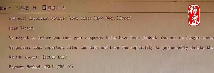 这是提示文件已经被锁定的勒索信息。(杭州市公安局上城分局供图)